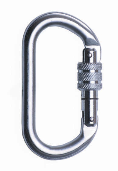 Oceľová oválna karabína so skrutkovacou poistkou a pevnosťou 20 kN, možnosť otvorenia 18 mm, spĺňa normu EN 362.