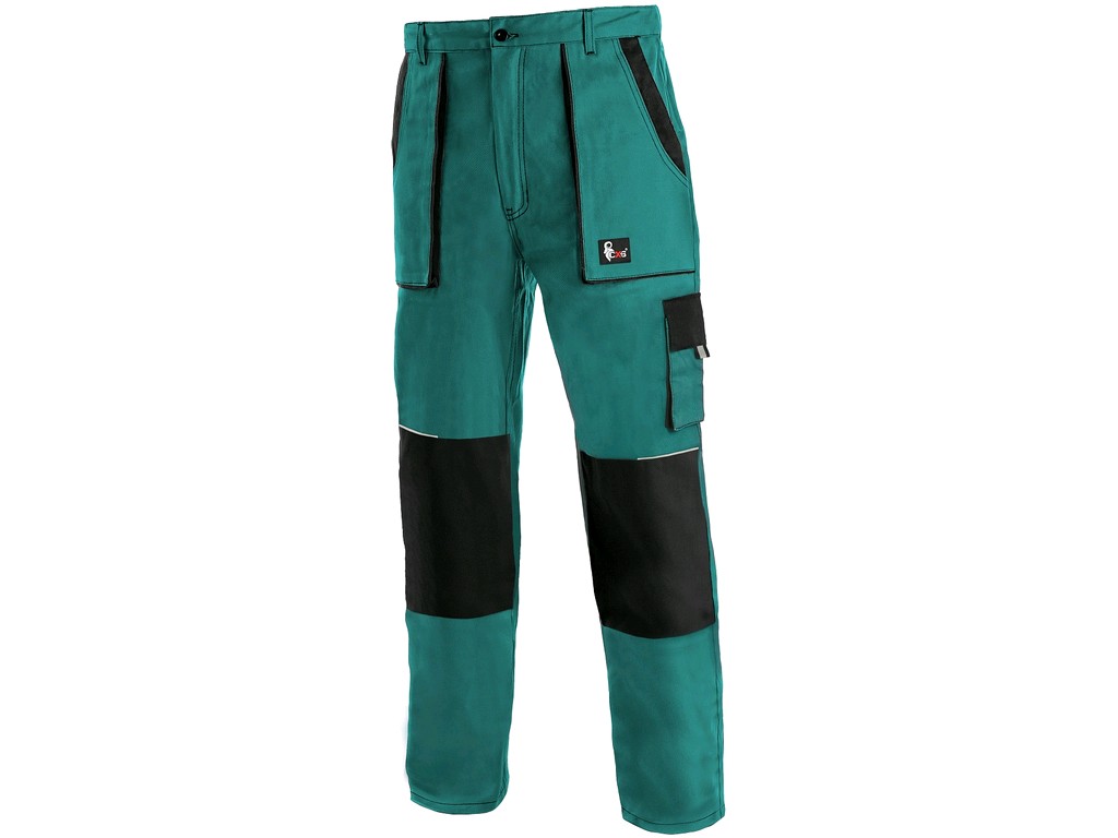 Montérkové nohavice CXS LUXY JOSEF majú zdvojené kolená pre vyššiu odolnosti voči oderu a pretrhnutiu. Pás je pevný, vzadu stiahnutý do gumy, vybavený pútkami na opasok. Na pracovných nohaviciach sú predné vakové vrecká, bočné vrecká na meter a mobil a zadné vrecká.