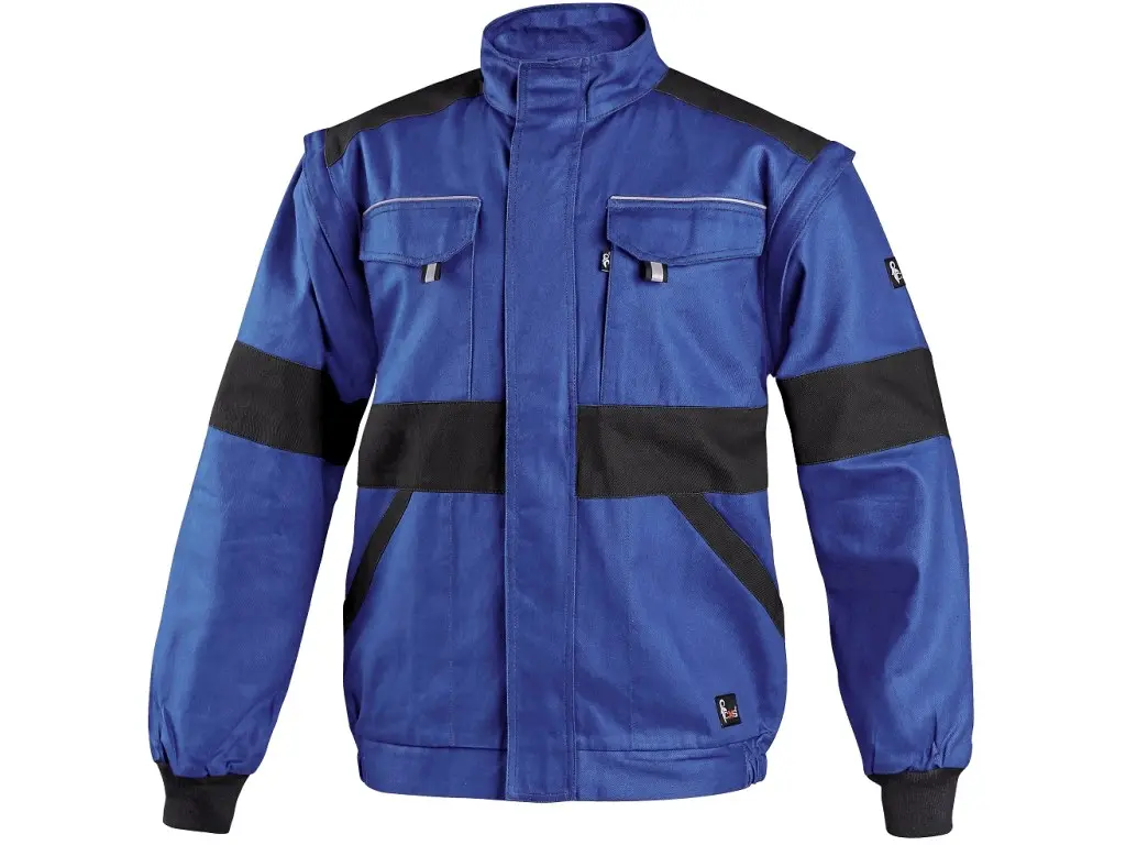 Pánska montérková blúza, odopínacie rukávy s pružnou manžetou, kryté zapínanie na zips a suché zipsy, náprsné vrecká s chlopňami, skryté náprsné vrecko na zips, jednoduché bočné vrecká, spodná časť na bokoch do gumy, reflexné doplnky. Odporúčané použitie: stavebníctvo, ľahký priemysel, logistika, skladová manipulácia, autoservisy, údržba, montáže, poľnohospodárstvo, záhrada, hobby.