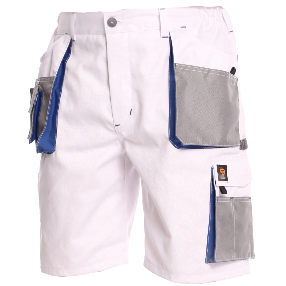 Krátke nohavice PROFI. Nohavice vyrobené z keprovej tkaniny odolnej voči roztrhnutiu a oderu, zloženej zo 65 % polyesteru a 35 % bavlny, s gramážou 290 g/m2. 10 funkčných vreciek vrátane dvojitých predných vreciek s ďalším vreckom na smartfón, vrecka na meter, dvoch zadných vreciek a vrecka na náradie s ďalším deleným vreckom na náradie. Háčik na popruh na pripevnenie príslušenstva alebo náradia. Vrecká vystužené materiálom OXFORD pre ochranu pred oderom. Nastavovacie elastické pásy po stranách pásu. Dodatočné výstuhy a dvojité šitie pre zvýšenú odolnosť.