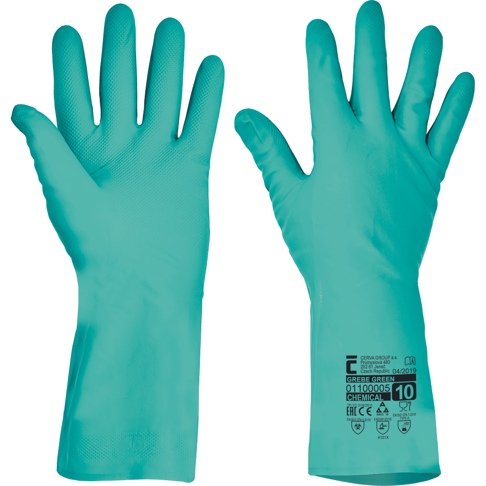 - Nitrilové rukavice GREBE 33 cm zelená