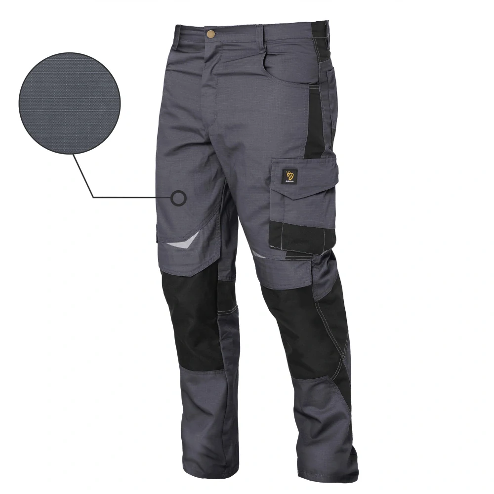 Nohavice HELICON sú vyrobené z tkaniny RIP STOP odolnej voči roztrhnutiu a oderu, 65 % polyesteru, 35 % bavlny, s gramážou 260 g/m². Vybavené ôsmimi funkčnými vreckami: vreckom na drobnosti, bočným vreckom na praktické veci, ďalšími vreckami na zips, dvoma zadnými vreckami a dvoma klasickými prednými vreckami. Výstuhy OXFORD na vreckách a kolenách chránia pred oderom. Možnosť pridať chrániče kolien. Ďalšie výstuhy, zábrany a švy zvyšujú odolnosť. Reflexné prvky zlepšujú viditeľnosť. Moderný dizajn a vysoké pohodlie pri nosení.
