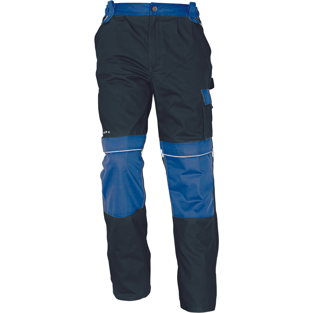 pracovné nohavice s vysokou odolnosťou, elastický pás kovové zipsy a zapínanie na gombíky 5 funkčných vreciek zosilnené kolená s vreckami na vloženie kolenných chráničov reflexné doplnky materiál: 100 % bavlna, 275 g/m² Normy: EN ISO 13688 EN ISO 13688  celý popis