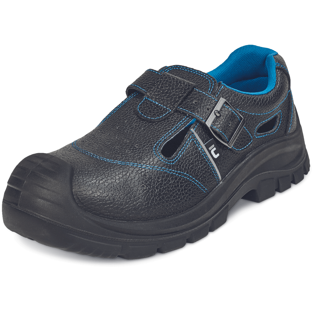 Pracovné sandále bez oceľovej tužinky, PU podošvou rezistentnou voči kyselinám a pohonným hmotám a zvrškom z kože.